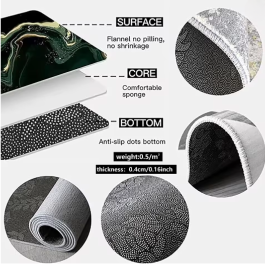 Die Küchenteppiche sind aus strapazierfähigen Polyestergeweben gefertigt, die Abnutzung und Verschleiß widerstehen. Die verstärkten Overlock-Kanten machen sie noch langlebiger. Mit einer Dicke von nur 0,5 cm sind sie ideal für Eingangsbereiche und blockieren keine Türen, was sie zu perfekten strapazierfähigen Küchenmatten macht.