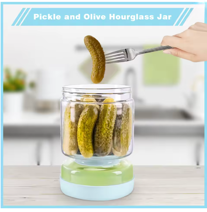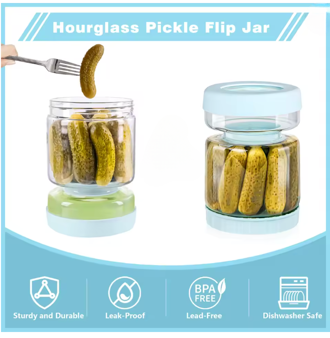Lieben Sie Gewürzgurken, Oliven oder Jalapeños, aber hassen es, mit der Gabel im Glas zu fischen oder klebrige Finger zu bekommen? Herkömmliche Gläser machen das Servieren mühsam und unhygienisch. Das FlipFresh Sanduhr-Glas revolutioniert Ihre Küche: Durch einfaches Umdrehen trennen Sie den Saft vom Inhalt. So servieren Sie im Handumdrehen trockene Snacks und bewahren sie danach wieder perfekt in ihrer schützenden Flüssigkeit auf.