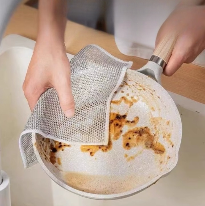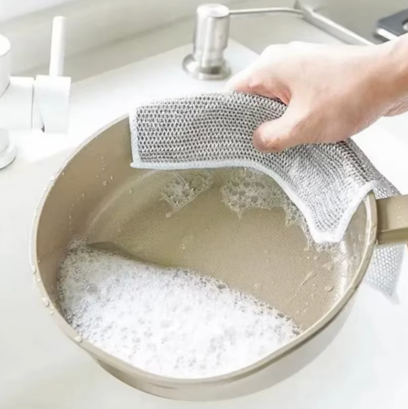 Kennen Sie das? Eingebrannte Speisereste lassen sich nur mit harten Drahtbürsten entfernen, die Ihre teuren Antihaft-Pfannen ruinieren. Gleichzeitig fangen herkömmliche Lappen schnell an zu riechen, weil Essensreste darin hängen bleiben. Das GlanzGitter ist die Revolution der Reinigung: Es kombiniert die Schrubbkraft von Draht mit der Sanftheit eines Tuches. Reinigen Sie mühelos Edelstahl, Glas, Keramik und sogar empfindliche Beschichtungen – garantiert ohne Kratzer!