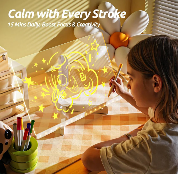 Das **LED Kreativ Zeichenbrett** ist die magische Leinwand, die die Ideen Ihres Kindes in leuchtende, lebendige Kunst verwandelt. Ein sicherer, wiederverwendbarer Spielplatz für kleine Künstler!