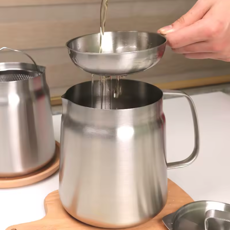 • Saubere Öl-Wiederverwendung: Das feinmaschige Netz fängt kleinste Partikel ab und hält das Öl klar und geschmacksneutral.