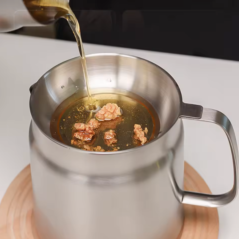 Das Geheimnis des PureFry liegt in seinem feinmaschigen Filtersieb aus 304 Edelstahl. Nach dem Frittieren gießen Sie das Öl einfach durch das integrierte Netz: Rückstände und Verunreinigungen werden sofort gestoppt, während das saubere Öl direkt in den Topf zurückfließt. So bleibt der Geschmack Ihrer Speisen unverfälscht und das Öl bleibt deutlich länger frisch. Kein Umfüllen in instabile Gefäße, kein Kleckern auf die Arbeitsplatte.