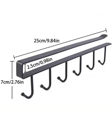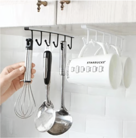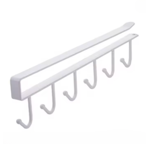 Die **Schrankhaken Leiste** (Under-Cabinet Hanger Rack) bietet eine bequeme Möglichkeit, Tassen, Kochgeschirr, Handtücher, Handschuhe oder alles, was Sie aufhängen möchten, unter dem Schrank oder Regal zu verstauen.