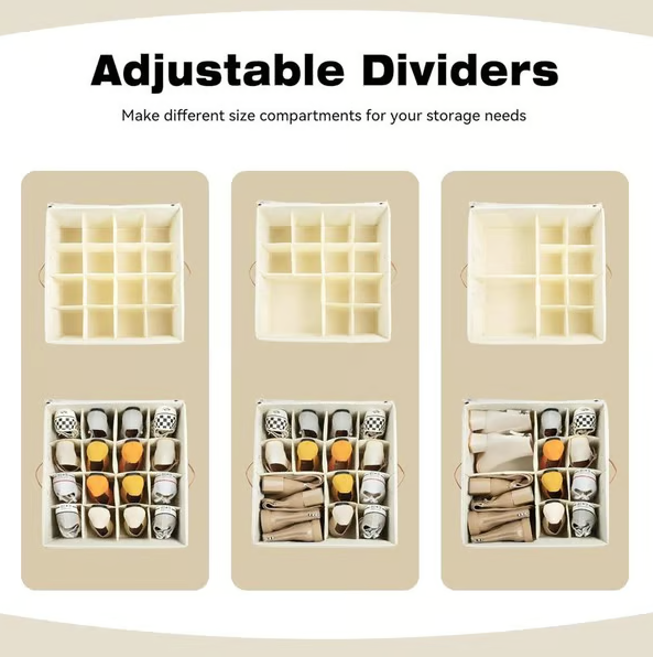 Hergestellt aus Premium-Materialien ist der Schuh-Organizer für dauerhafte Haltbarkeit konzipiert. Der Rahmen und der Boden bestehen aus verdicktem Karton und hochdichtem Oxford-Stoff, und die Trennwände sind aus Hohlplatte und Vliesstoff gefertigt, was Ihnen eine zuverlässige Aufbewahrungslösung bietet. Qualität, auf die Sie sich verlassen können.